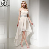 Item Type: Bridesmaid DressesBuilt-in Bra: YesSilhouette: High/LowDecoration: Pleat,SashesWaistline: EmpireFabric Type: ChiffonFashion Element: SimpleNeckline: StraplessActual Images: YesDresses Length: Knee-LengthSleeve Length(cm): SleevelessAge Group: AdultSleeve Style: Sleevelessis_customized: YesBrand Name: aixiang