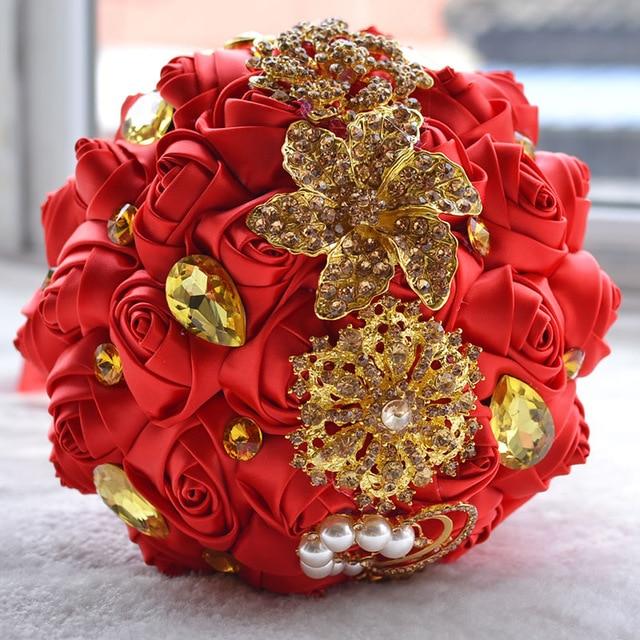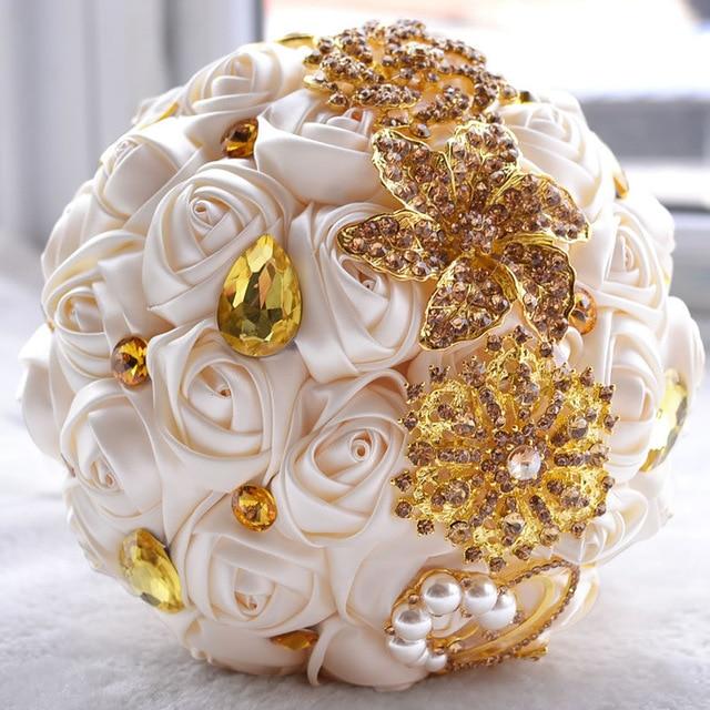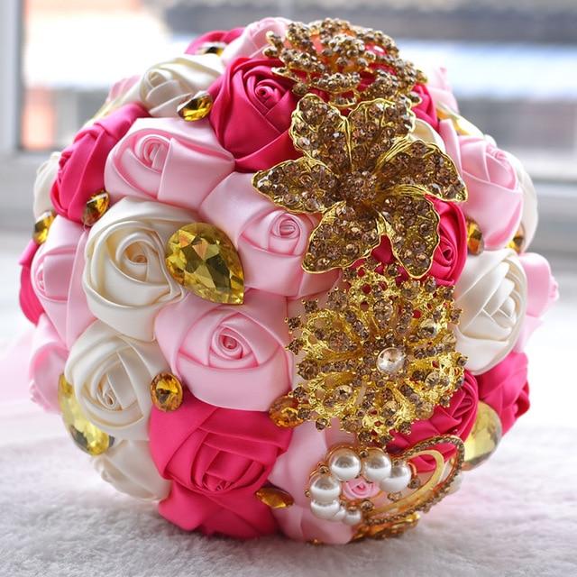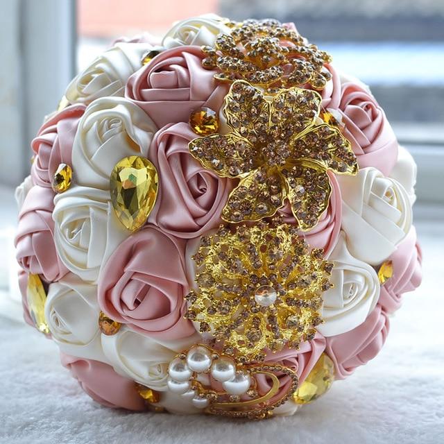 Features: with Shinning Gold Brooches on Satin Roses