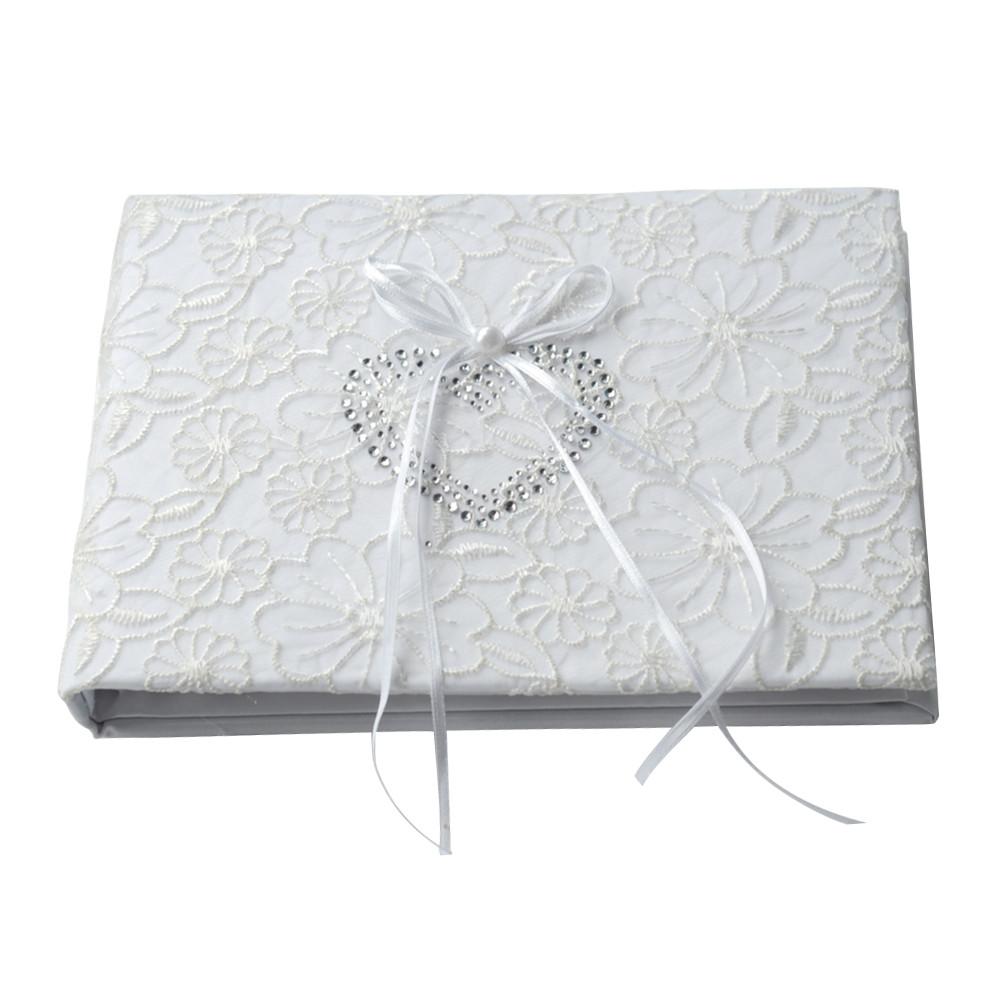 This is a beautiful and exquisite guest book, which is decorated with lace and ribbon. Made of premium material, this guest book is durable and wearproof. It's a necessity in wedding party to note down the participants. Also a smart decoration in your wedding party.