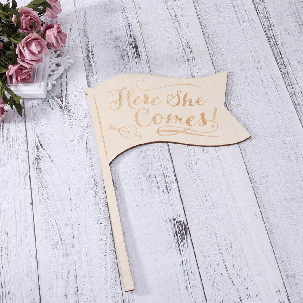 This item is a nice and practical bride pennant flag for weeding party, which is made of premium wood material for durable use. With the words HERE SHE COMES, can attract the signt of gusts and groom. Suitable for the bride coming into play. Perfect for the pair of flower girls or ring bearers in your wedding.