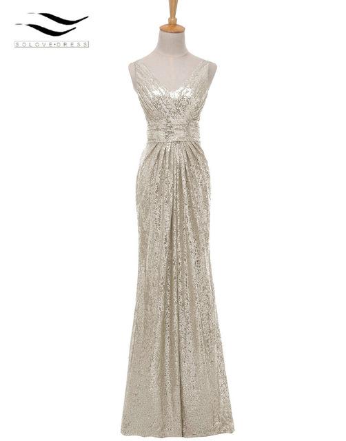 Item Type: Bridesmaid DressesFabric Type: SequinDecoration: Pleat,Tiered,SequinedBuilt-in Bra: YesSleeve Style: Cap SleeveSilhouette: Mermaid/TrumpetSleeve Length(cm): Sleevelessis_customized: YesBrand Name: SOLOVEDRESSAge Group: AdultModel Number: B00601Waistline: NaturalActual Images: YesFashion Element: VintageNeckl